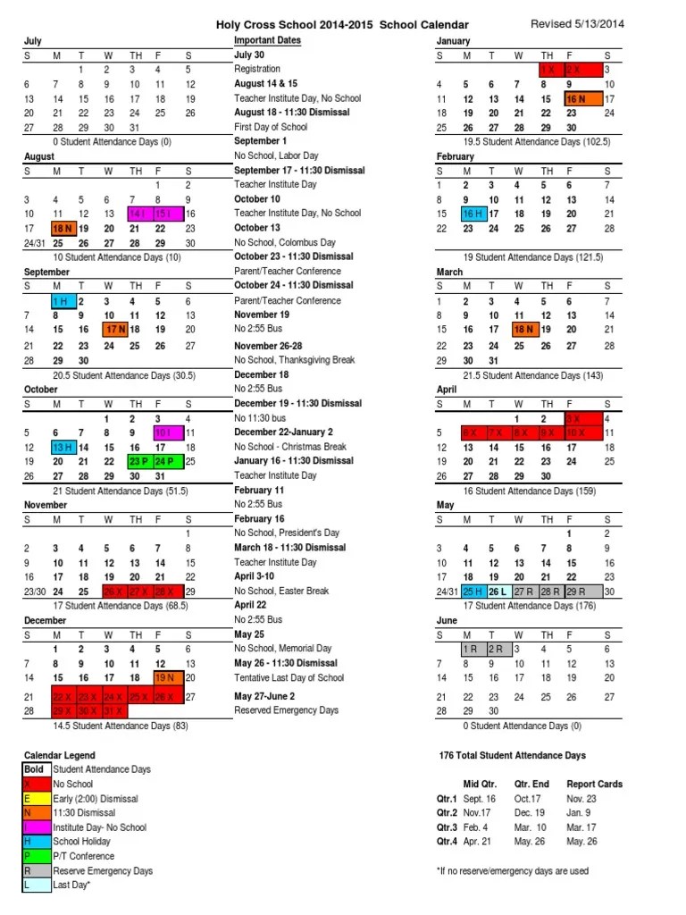 Holy Cross School 20142015 School Calendar Revised 5/13/2014 PDF
