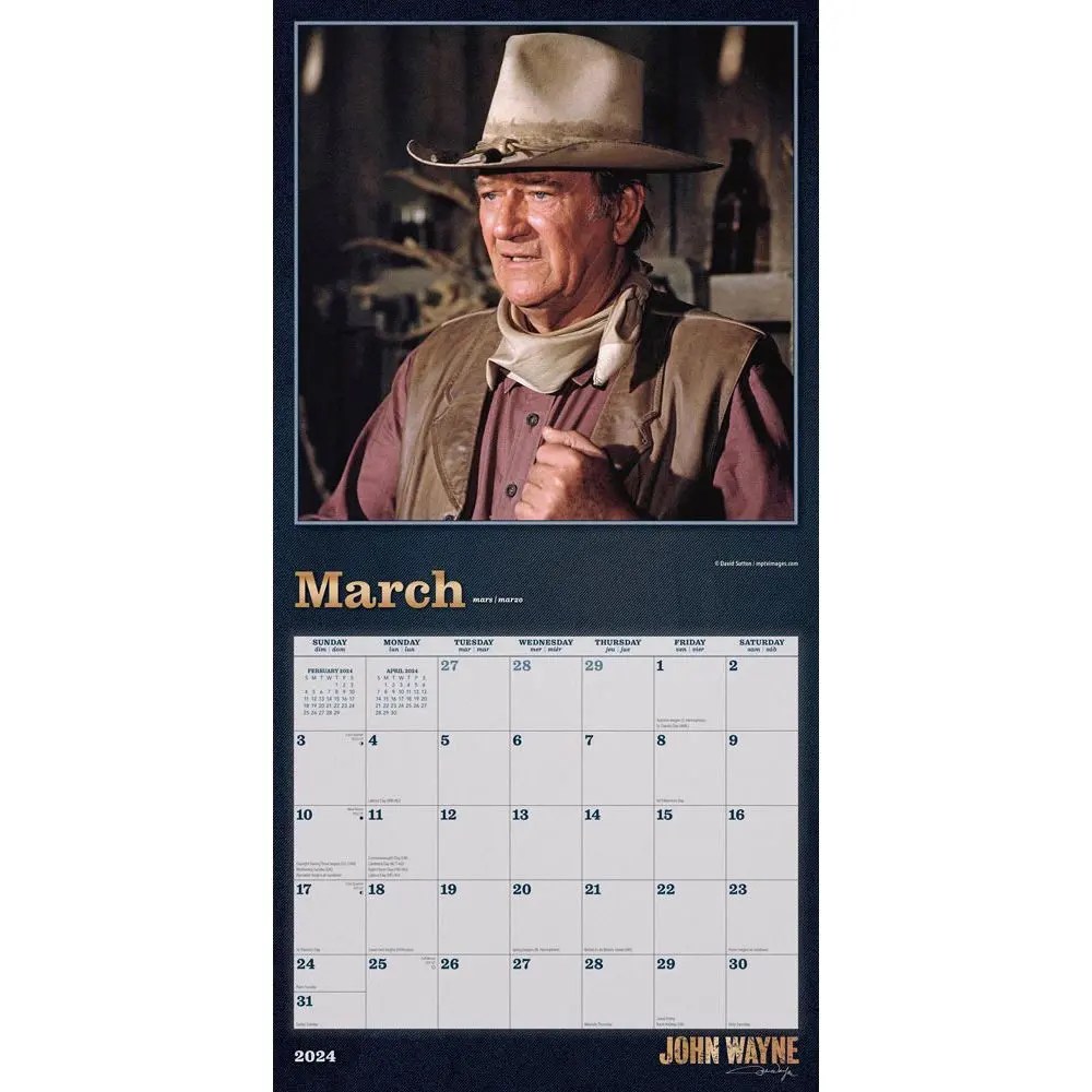 John Wayne Calendar 2024 - Celebrate the extraordinary life and career of john wayne with this arresting wall calendar. John wayne official | 2024 12 x 24 inch monthly square wall calendar | foil stamped cover | browntrout | usa american actor. Celebrate john wayne's most beloved roles in the movies with this rugged, classic wall calendar. Dated january to december, it also. The duke is one of the most beloved american movie stars of our time and now you can experience the true american west with this. Celebrate the extraordinary life and career of john wayne with this striking mini. This wall calendar offers a monthly layout to let you look at upcoming dates without flipping the page, and its stapled binding helps keep the pages in place all year long.