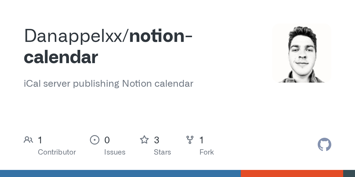 GitHub Danappelxx/notioncalendar iCal server publishing Notion calendar