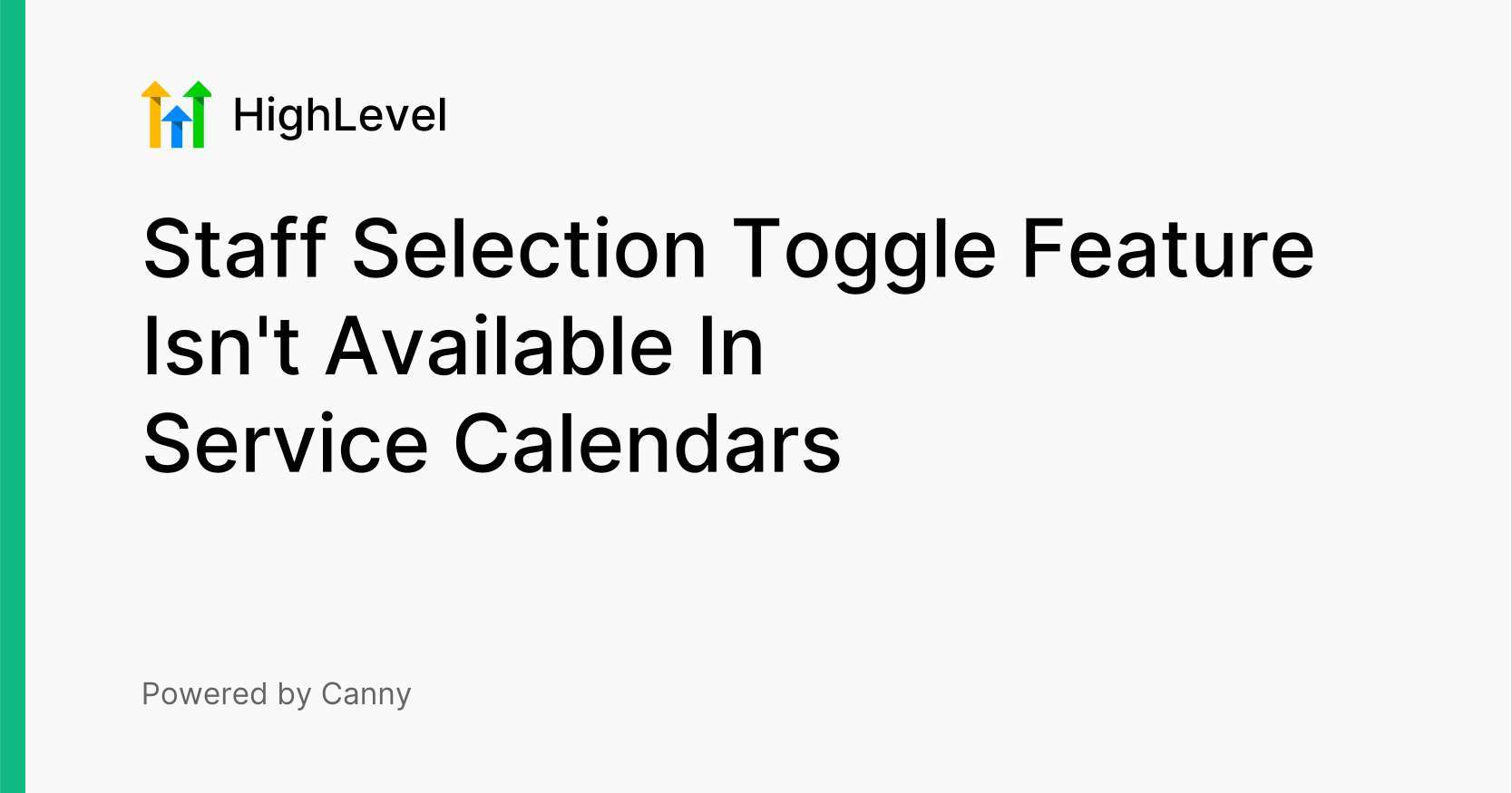 Staff Selection Toggle Feature Isn't Available In Service Calendars